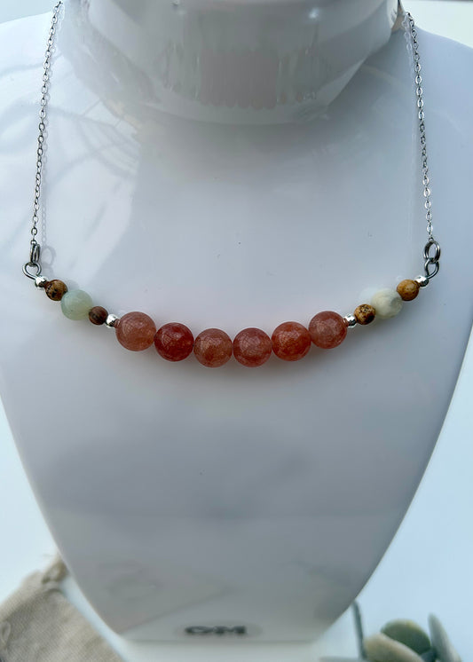 Peach Moonstone x Amazonite x Picture Jasper Necklace