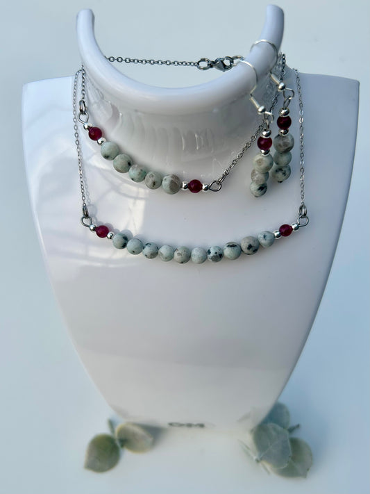Pink Garnet x Kiwi Jasper Necklace